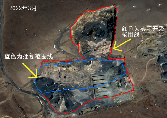 图1卫星影像图显示,中建交通建设工程(西藏)有限公司1号砂石料场越界开采问题突出
